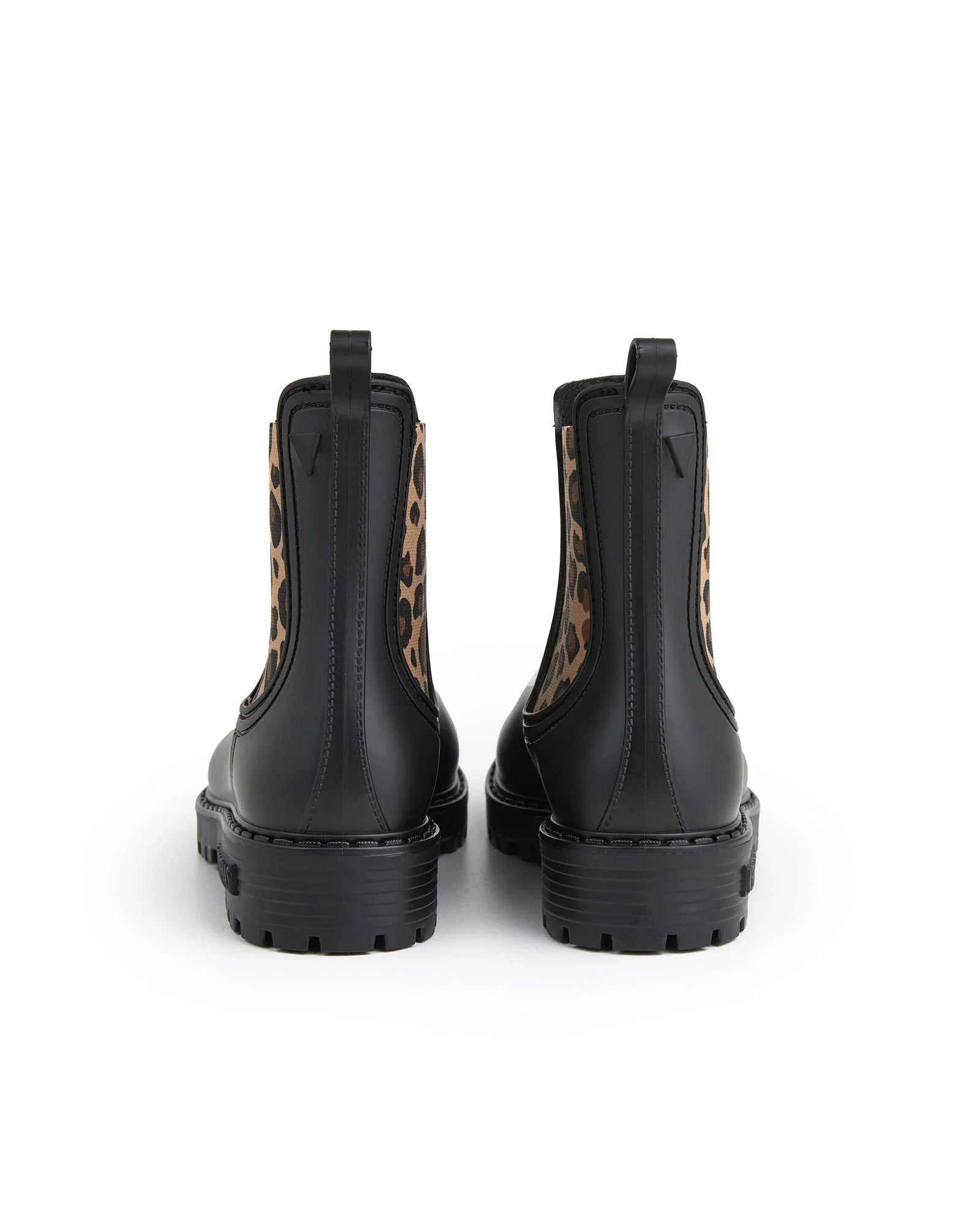- Gaudí Mate bottes de pluie Noir et élastique léopard.